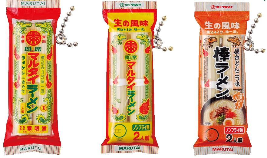 今年で発売65年を迎える『マルタイラーメン』(通称:棒ラーメン)をはじめ、家庭⽤⽫うどん⼈気NO.1の『⻑崎⽫うどん』や『⻑崎ちゃんぽん』(カップめん)、業界初・即席とんこつスープの袋めん『屋台ラーメンとんこつ味』など、九州の味にこだわりながら様々な商品をお客さまにお届けしています。