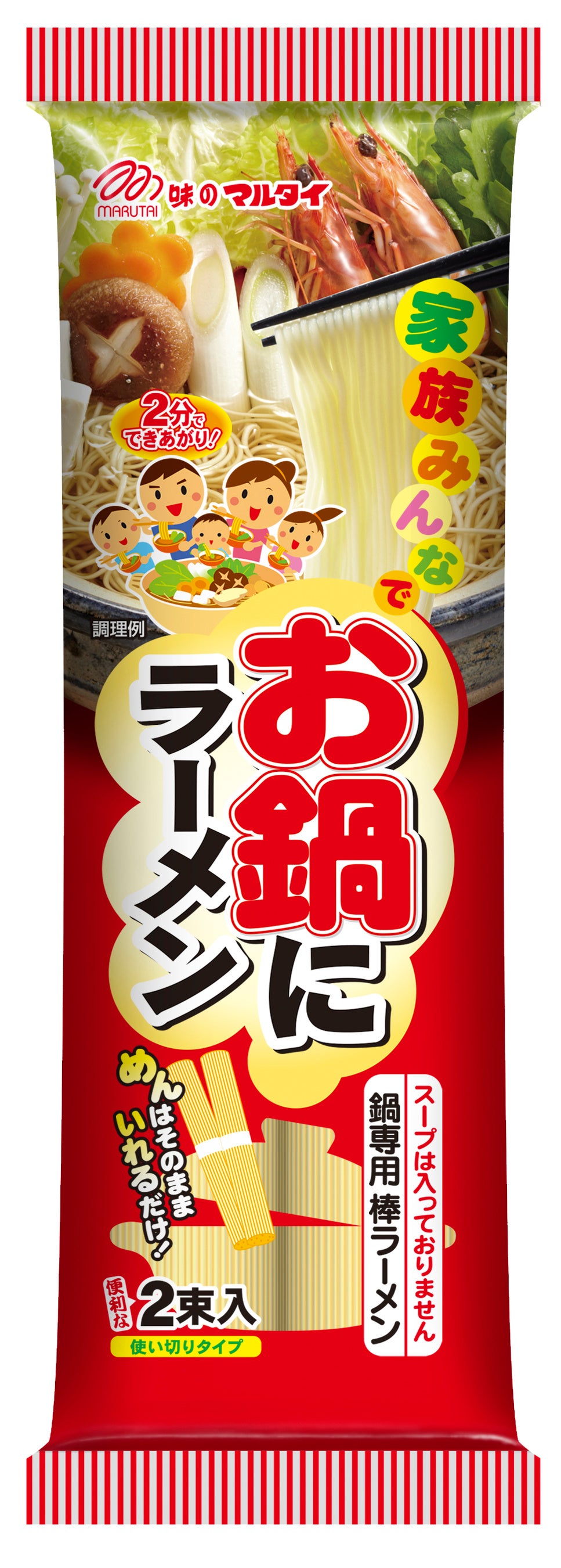 シロカの「おりょうりケトル ちょいなべ」は、ケトルと鍋が一体となっており、「作る・食べる・保存」までが1台で完結する製品。「なべモード」なら、設定温度が持続するから卓上でもずっとおいしい温度のまま熱々のお鍋が楽しめます。お鍋の〆は、マルタイの「お鍋にラーメン」!お鍋の汁を吸っても味が濃くなりすぎないよう、通常の「棒ラーメン」よりも塩分を減らしています。お鍋に入れて2分待つだけで完成し、どんな味付けのお鍋にも合う万能麺です。
