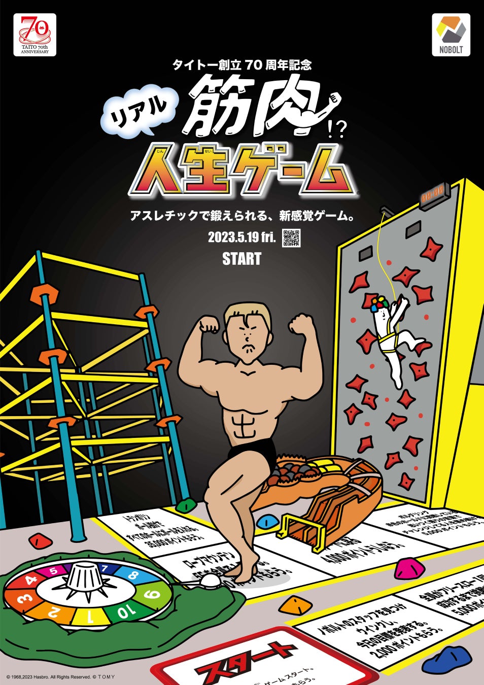 『タイトー ポケット人生ゲーム』がクレーンゲームの景品に!アスレチック・スポーツ施設 NOBOLT(ノボルト)では期間限定で『リアル筋肉!? 人生ゲーム』が開催決定!