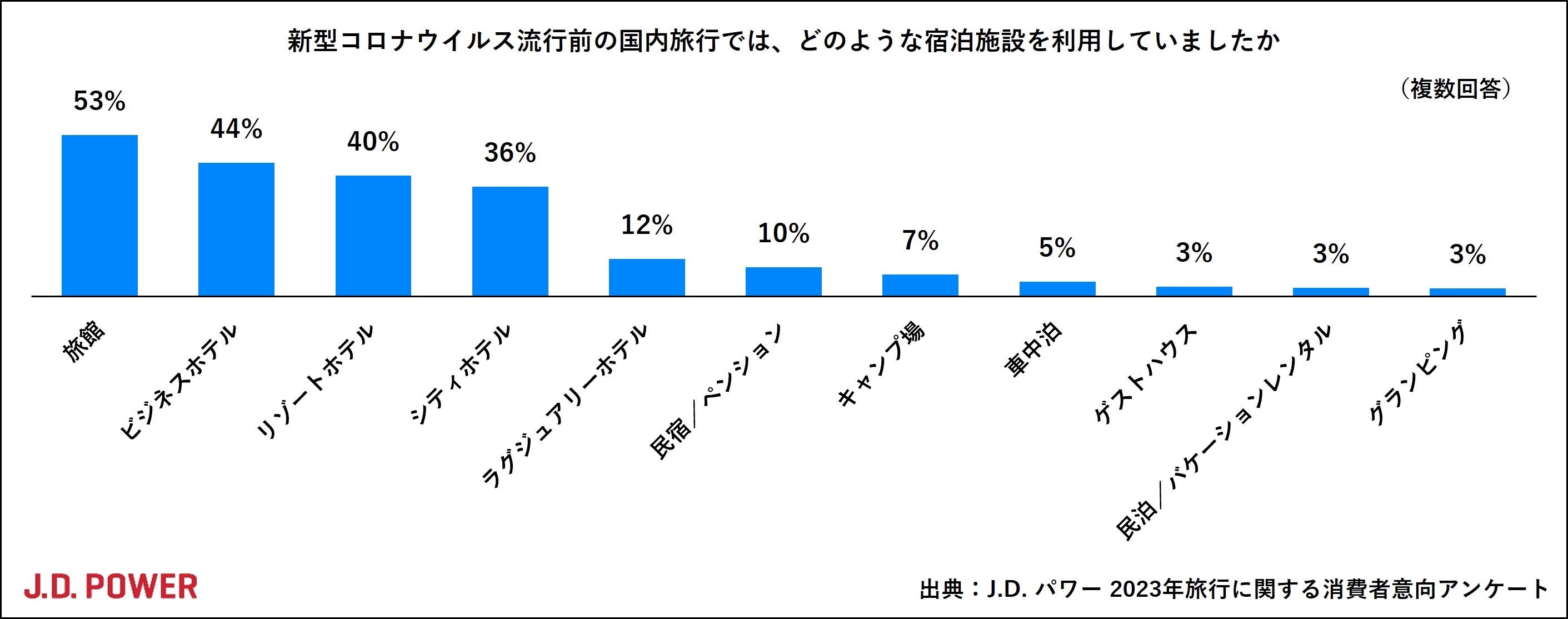 新型コロナウイルス流行前の国内旅行で利用していた宿泊施設タイプについて尋ねました。