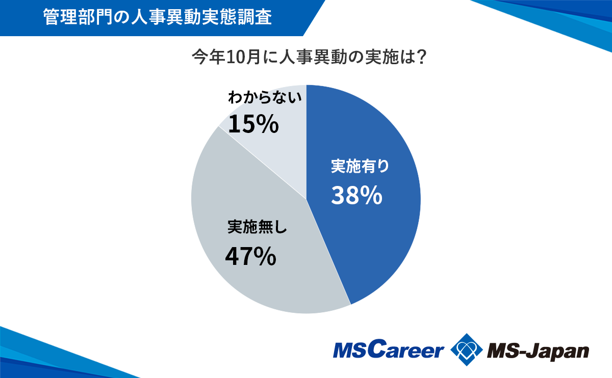 人事異動制度に関する調査では、人事異動が年に2回以上ある企業は24%で、今年の10月に人事異動が実施された企業は38%ということがわかりました。