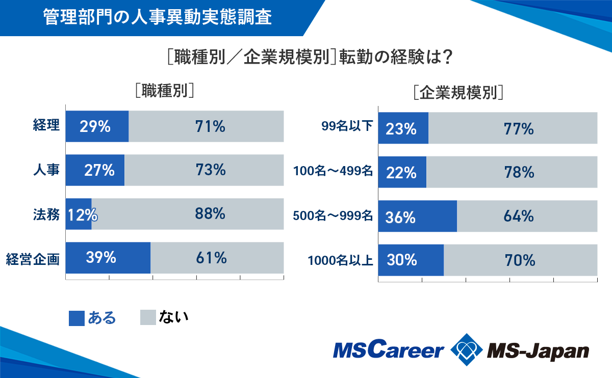 そこで、管理部門・士業の転職やキャリアを支援するMS-Japanでは、「管理部門の転勤・人事異動の実態」に関する調査を実施しました。