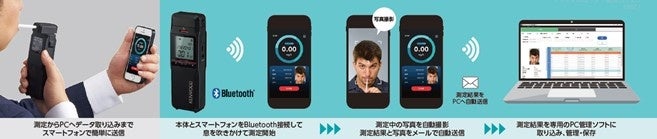 株式会社JVCケンウッドは、ドライバーを抱える事業者に向けて、スマートフォンと連携して測定結果を管理者のPCにメールで送信し、検査結果の記録・管理を容易にする通信型アルコール検知器を開発しました。