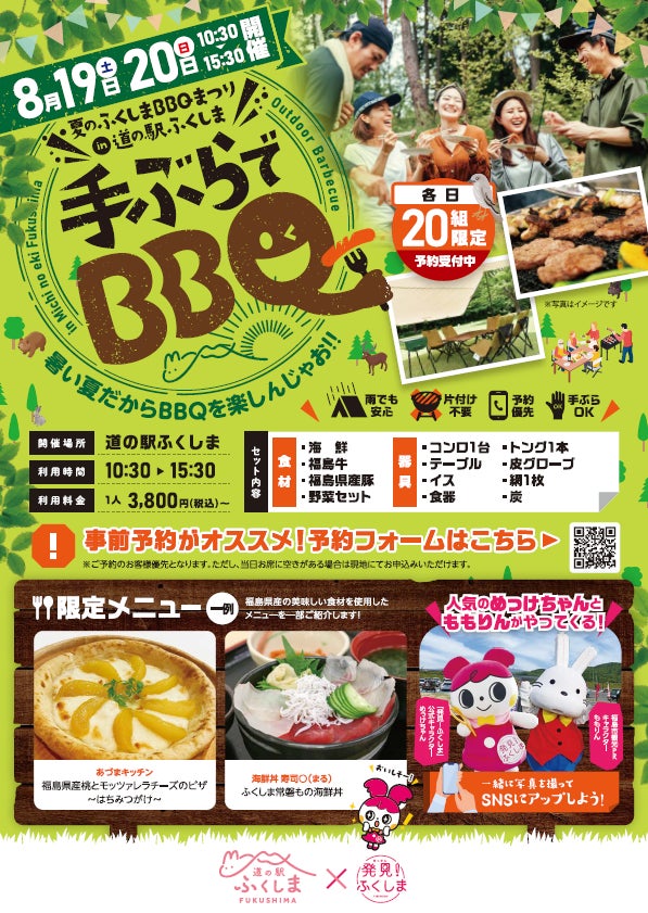 道の駅ふくしま×発見!ふくしま コラボイベント ~8月19日(土)・20日(日)の2日間は道の駅ふくしまで手ぶらBBQが楽しめる!~