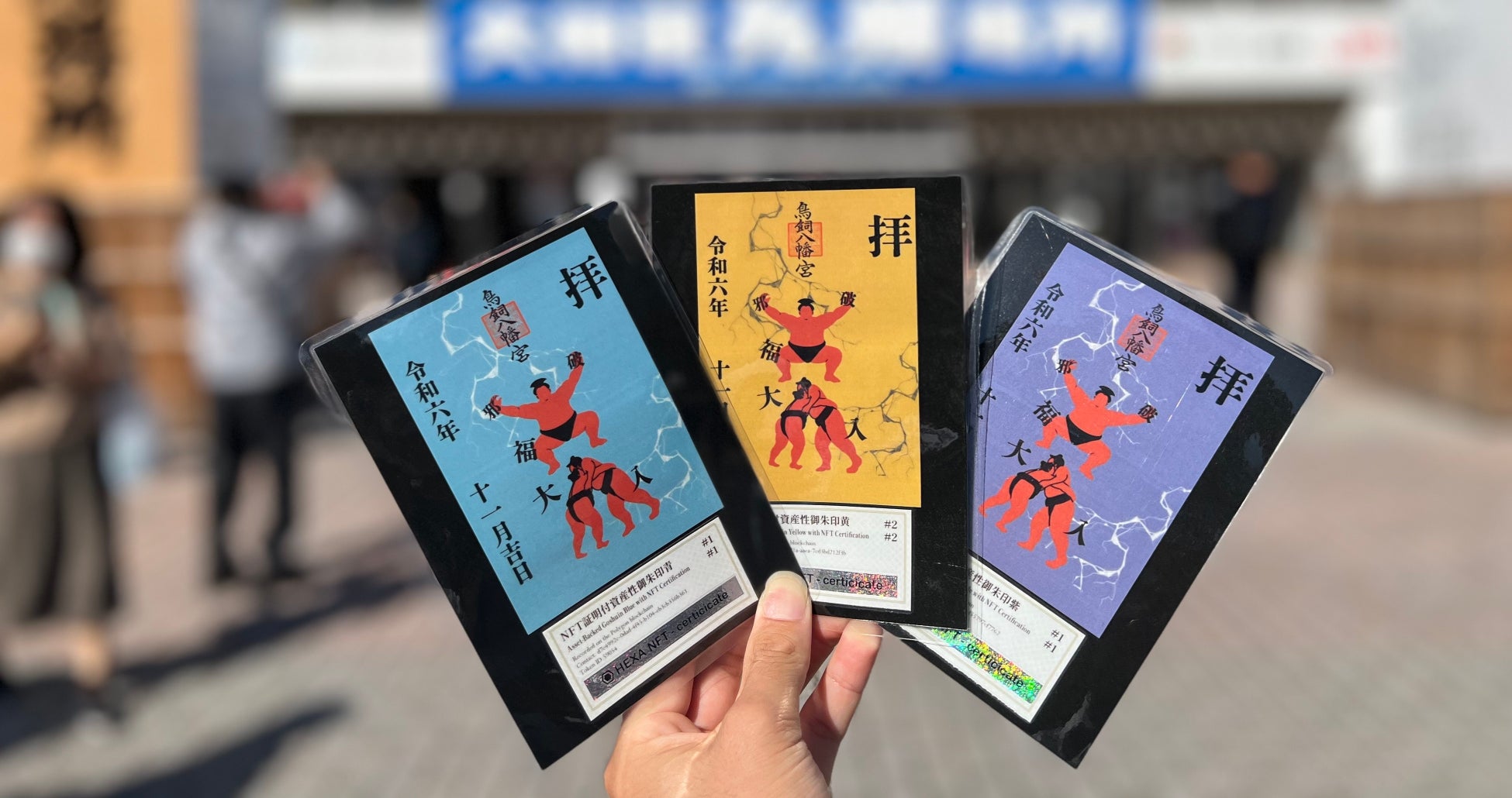 従来発行数の管理や本物・偽物の証明が難しかった御朱印(通常1,500円で販売)にNFT証明をつけてナンバリングして資産性をもたせ、主にインバウンドで大相撲九州場所に来日される外国人観光客に販売し、20倍の価格という、世界価格に引き直して販売することができました。