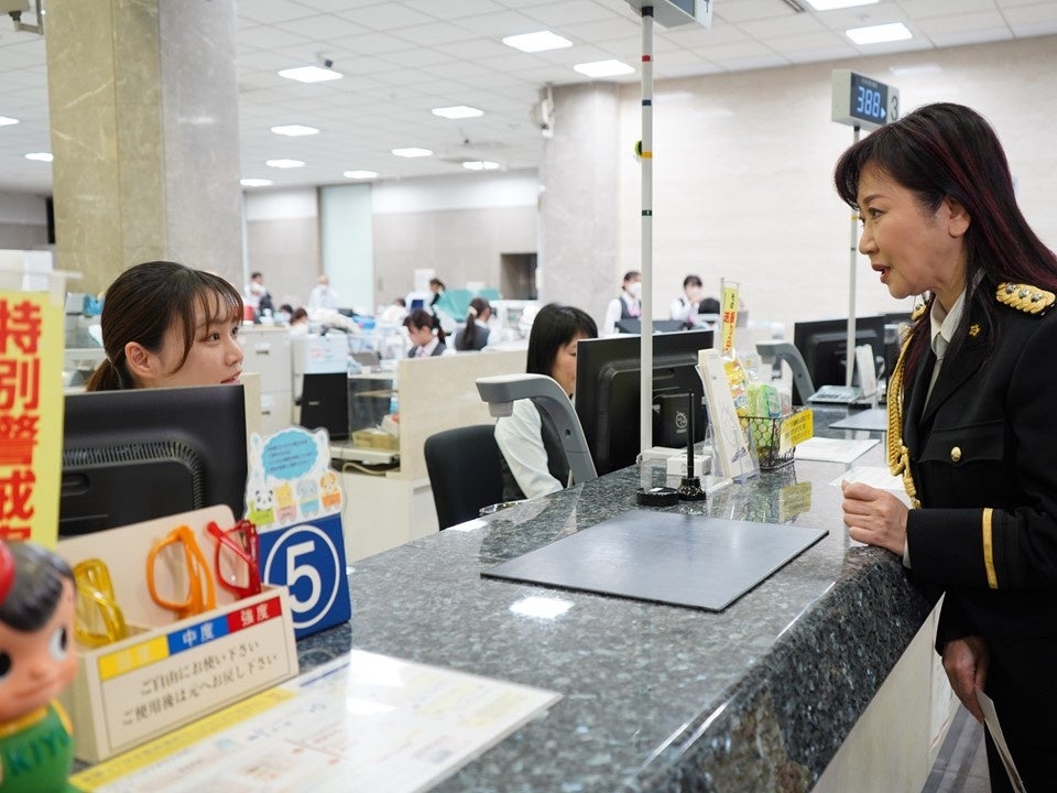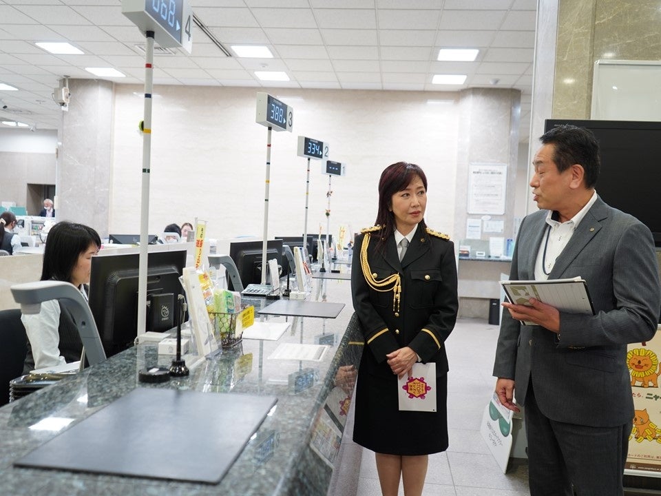 「金融機関での声掛けは、県民の皆さんの財産を守るためのものです。急いでいるときなどでも、行員さんからお声掛けされた場合は、詐欺防止のための取組とご理解いただき、協力をお願いします。」と呼びかけました。