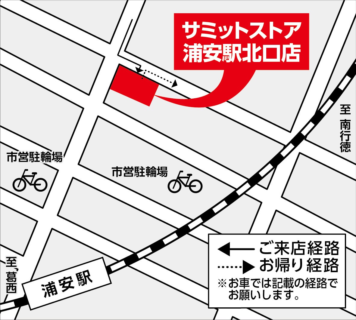 ・ご来店は市川浦安線(県道6号)を浦安駅方面に向かい、店舗手前を左折し、右折にてお入りいただけます。お帰りは店舗前の道路は、一方通行のため右折出庫となります。