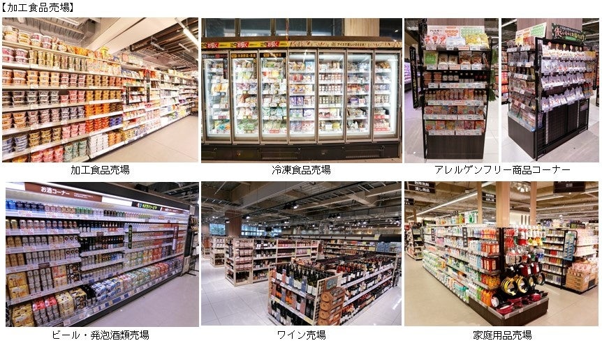 その他、加工食品売場では「ビール・発泡酒類」「ワイン」等の酒類の品揃えを充実させます。更に「地元の漬物」等、特徴のある商品の品揃えや「アレルゲンフリー」食品をコーナー化します。