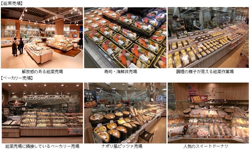 オープンキッチンでライブ感のある総菜売場では、サミット自慢のおいしい商品をご来店のピーク時間に合わせて、でき立てで提供します。隣接するベーカリー売場では、専用のピザ窯で焼き上げたナポリ風ピッツァや、ファミリー世帯に人気のスイートドーナツを豊富に品揃えし、昼食や夕方のお買物時間に合わせて焼き立て、でき立て商品を販売します。
