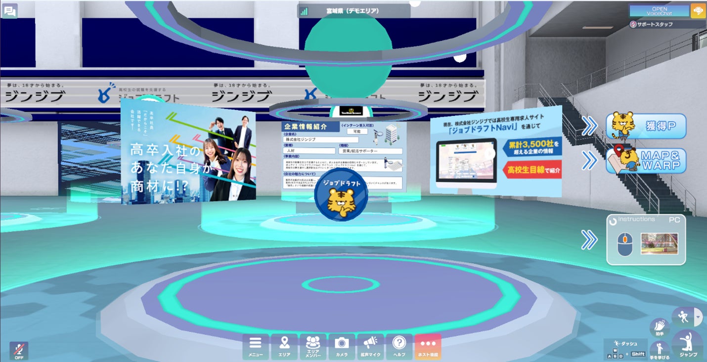 高校生の就職を支援している「ジンジブ」(大阪市)では、2025年9月8日から2026年3月末まで、高校生に向けてメタバース空間で開催する合同企業説明会「ジョブドラフト ~メタバースFes~」をオープンいたします。