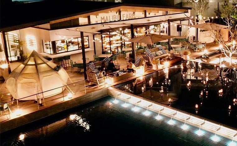 L.A.のセレブに絶大な人気を誇る「マリブファーム」は、大人のマリーナリゾート「リビエラ逗子マリーナ」に、日本初上陸レストランとして2020年3月にオープンしました。秋冬限定で開催するカマクラテラスは、暖房を完備し冬でも温かく、野外でも個室感覚で食事を楽しめると毎年人気を博しています。特に海のリゾートを幻想的に演出するディナーは大人の方々に好評いただいています。誕生日や記念日などのアニバーサリーでの利用にも最適です。また、マリブファームのテラス席同様に、愛犬とも一緒に過ごすことができます。