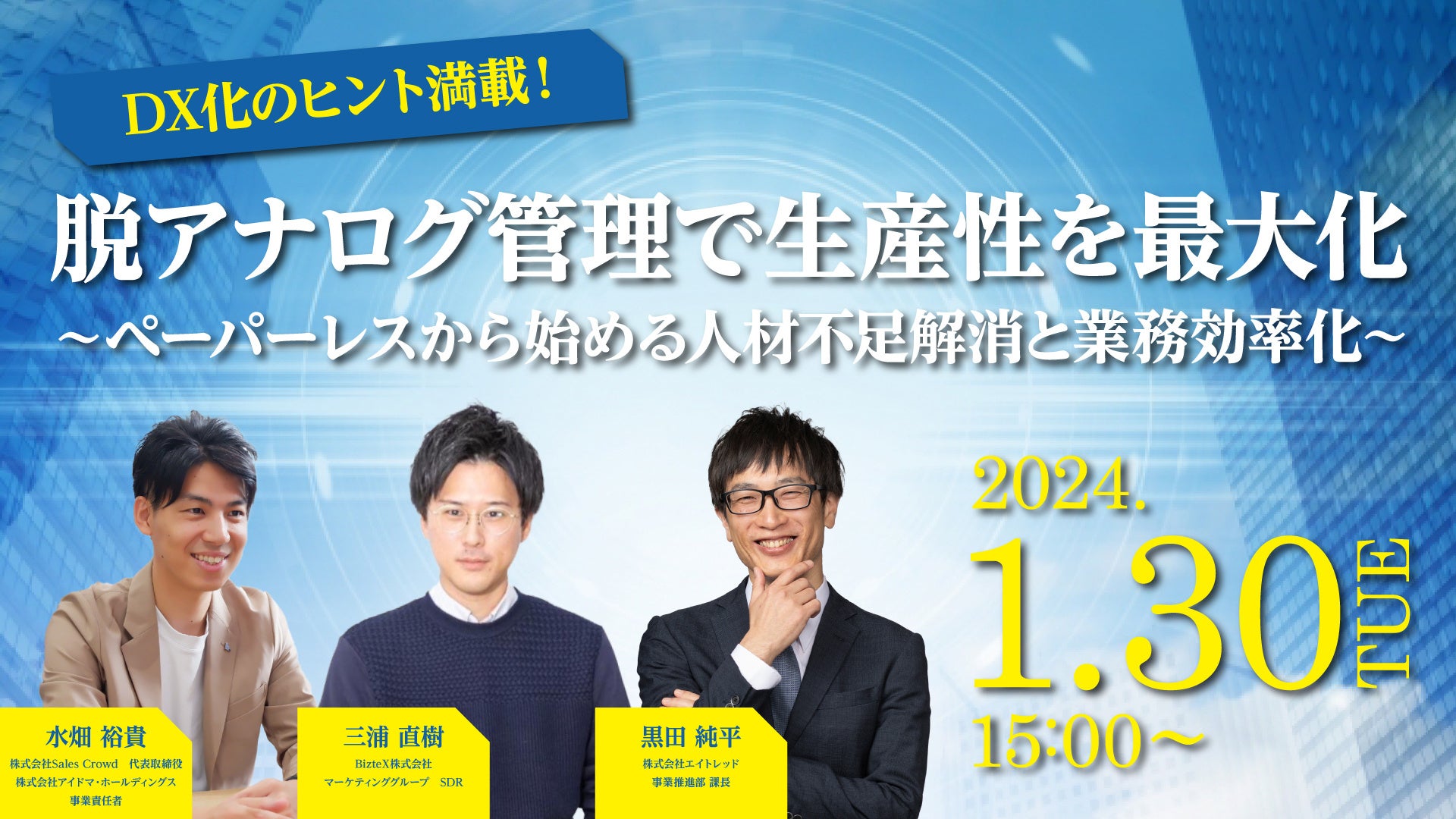 【1月30日開催|オンラインセミナー】DX化のヒント満載!脱アナログ管理で生産性を最大化 ~ペーパーレスから始める人材不足解消と業務効率化~