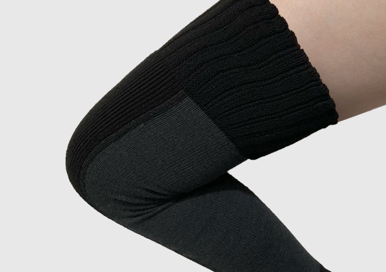 今回登場する「膝上ロング丈ソックス」は、厚手の吸湿発熱素材を採用し、膝上までしっかりと保温する“集中保温”設計になっています。