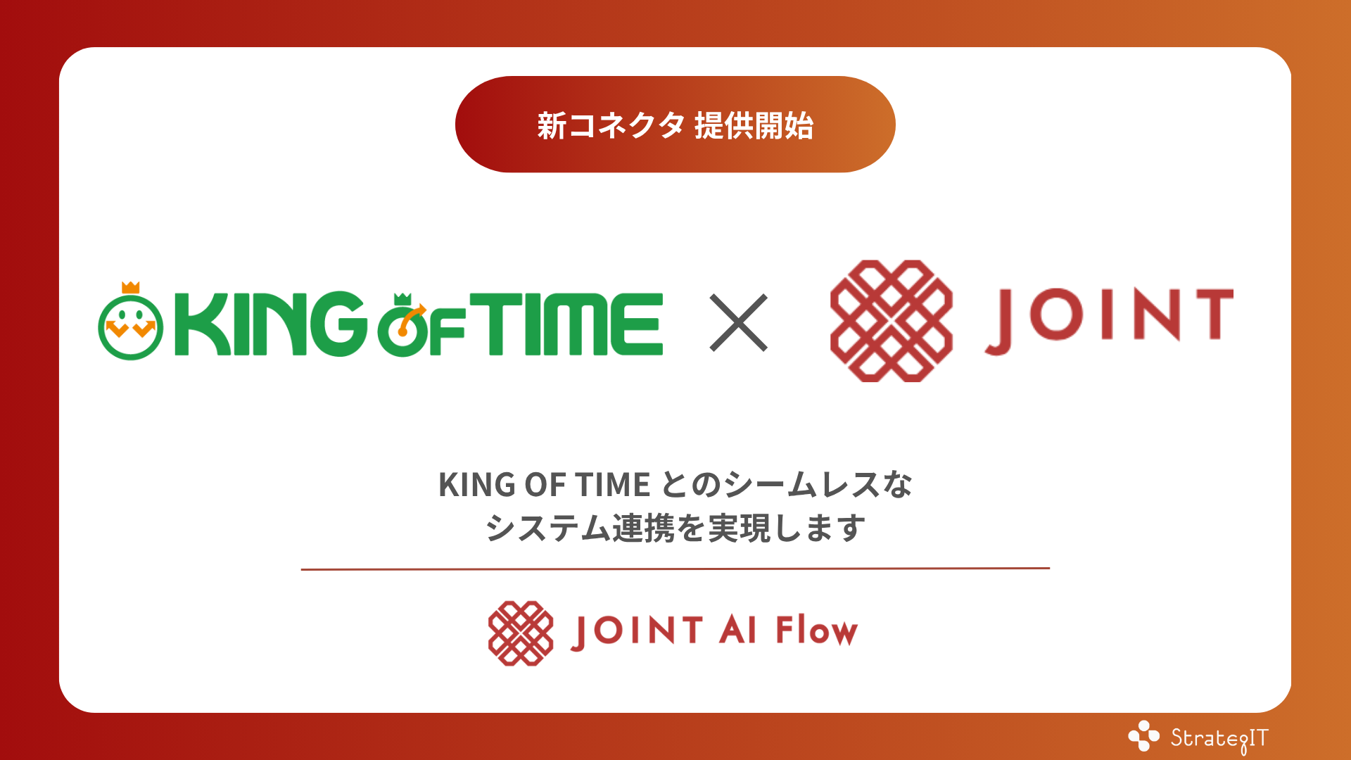ストラテジットの「JOINT AI Flow」で「KING OF TIME」コネクタの提供を開始