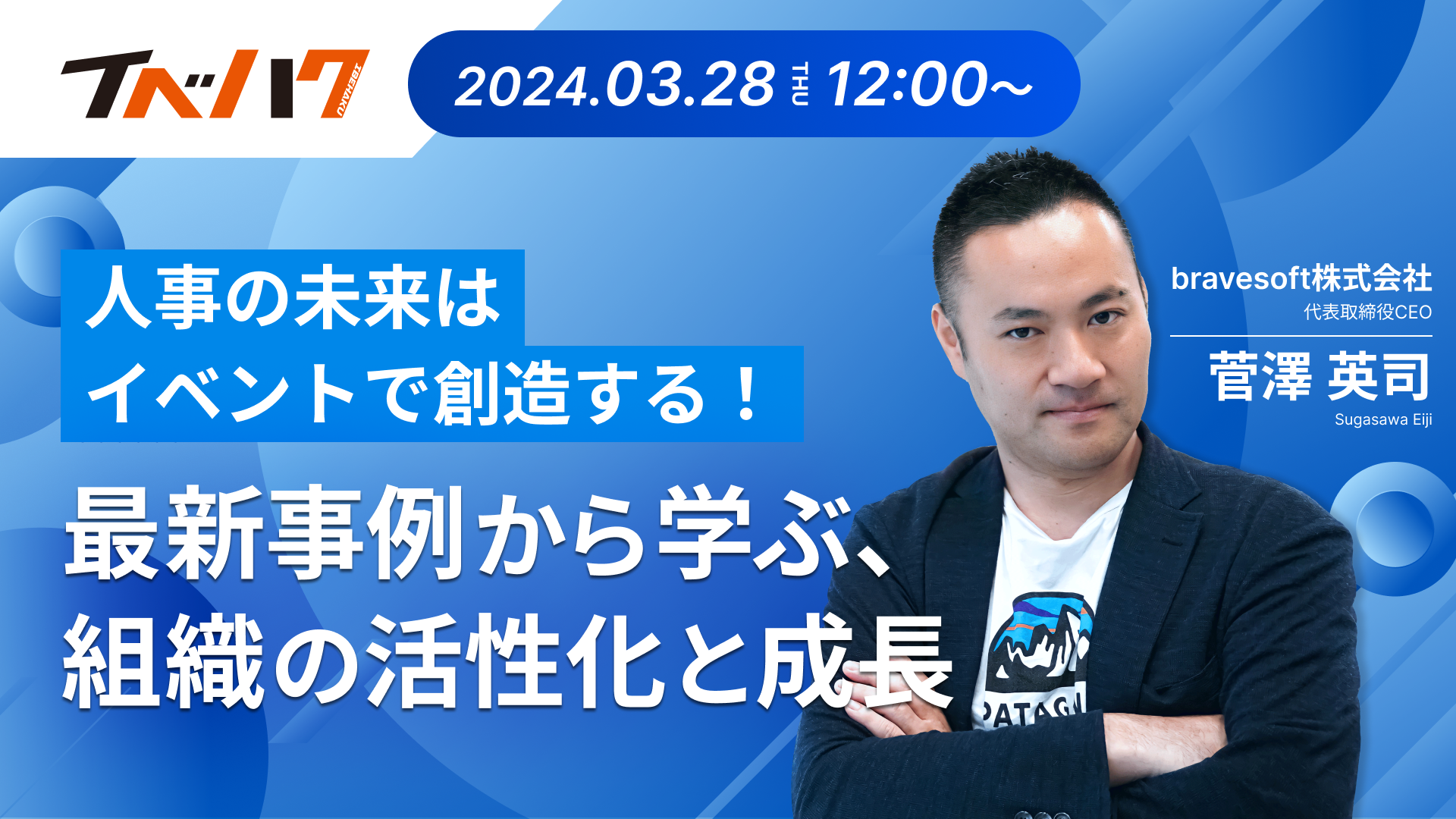 bravesoft株式会社(本社:東京都港区、代表取締役:菅澤英司、https://bravesoft.co.jp/)が展開するイベントマーケティングに関する動画メディア「イベ博」内で、2024年3月28日(木)12:00〜「人事の未来はイベントで創造する!最新事例から学ぶ、組織の活性化と成長」と題したセミナーを開催します。