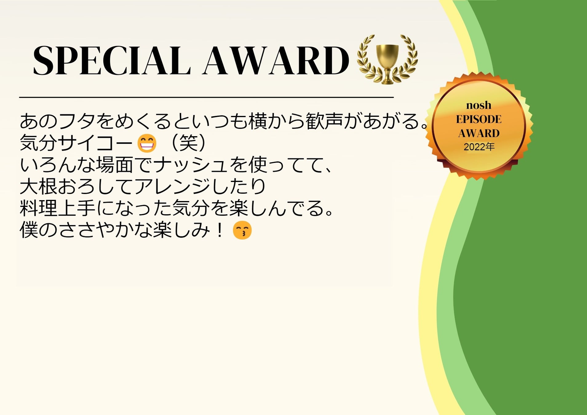 - noshエピソード AWARD 2022受賞エピソード