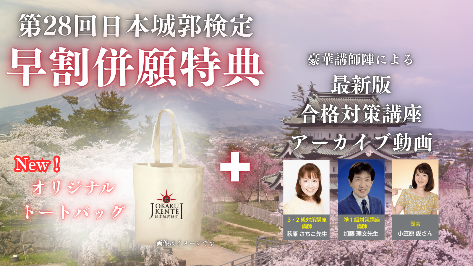 [早割]&[併願]申込特典。日本城郭検定オリジナルトートバック&合格対策講座のアーカイブ動画をプレゼント!