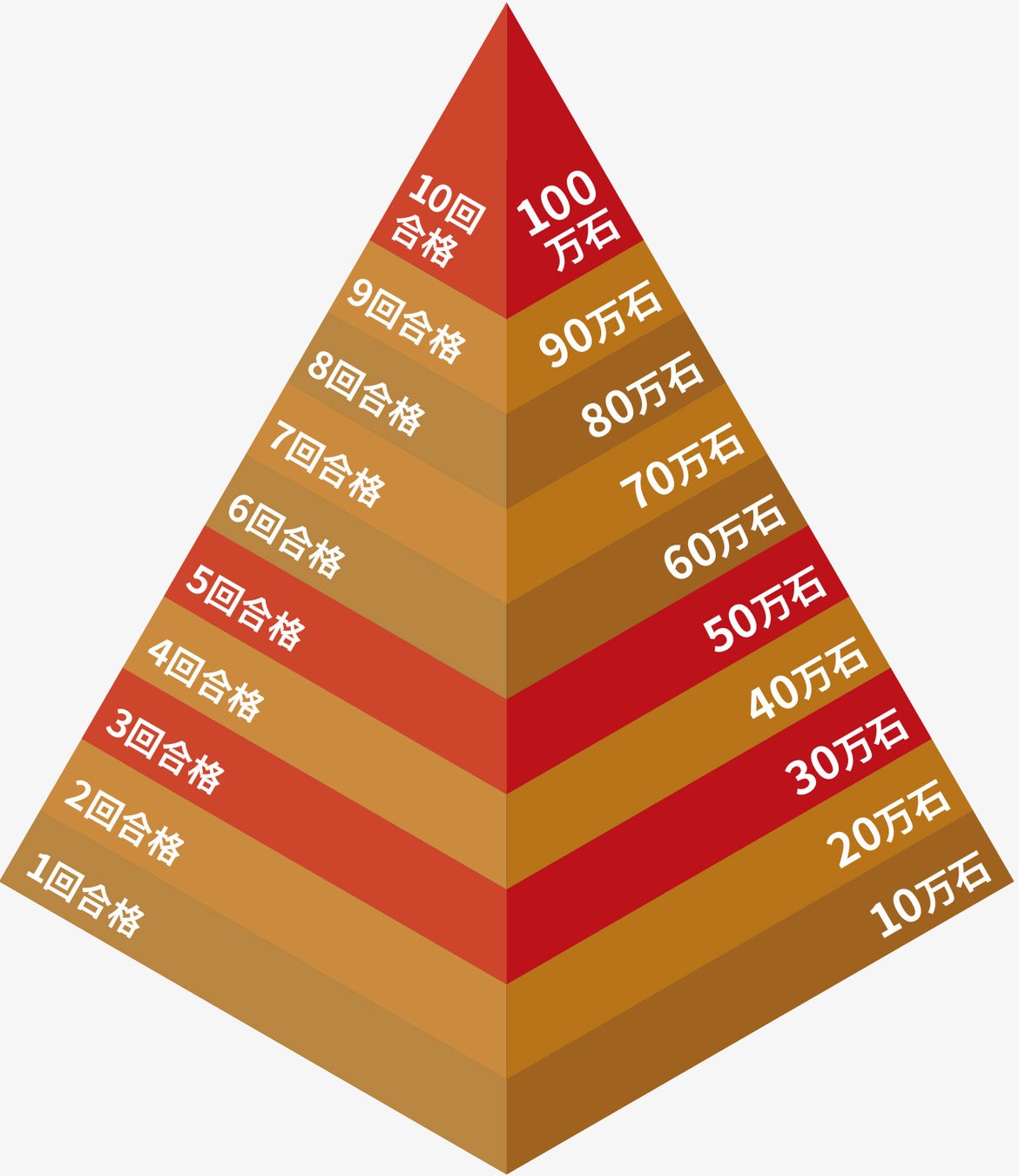 日本城郭検定最上位級である1級の合格回数に応じて、石高を増加する制度、石高制度を導入します。30万石、50万石、100万石獲得時には、日本城郭協会・日本城郭検定運営事務局より表彰・記念品の贈呈を行ないます。