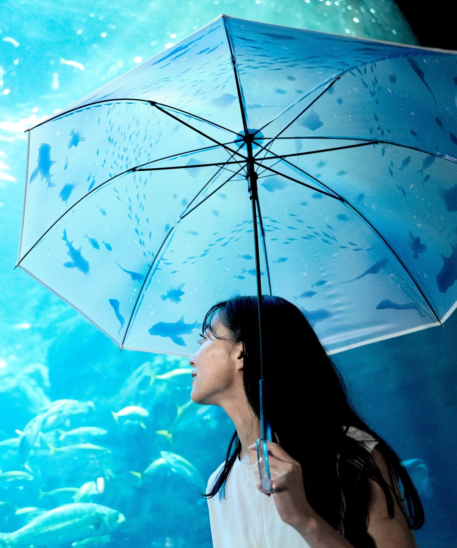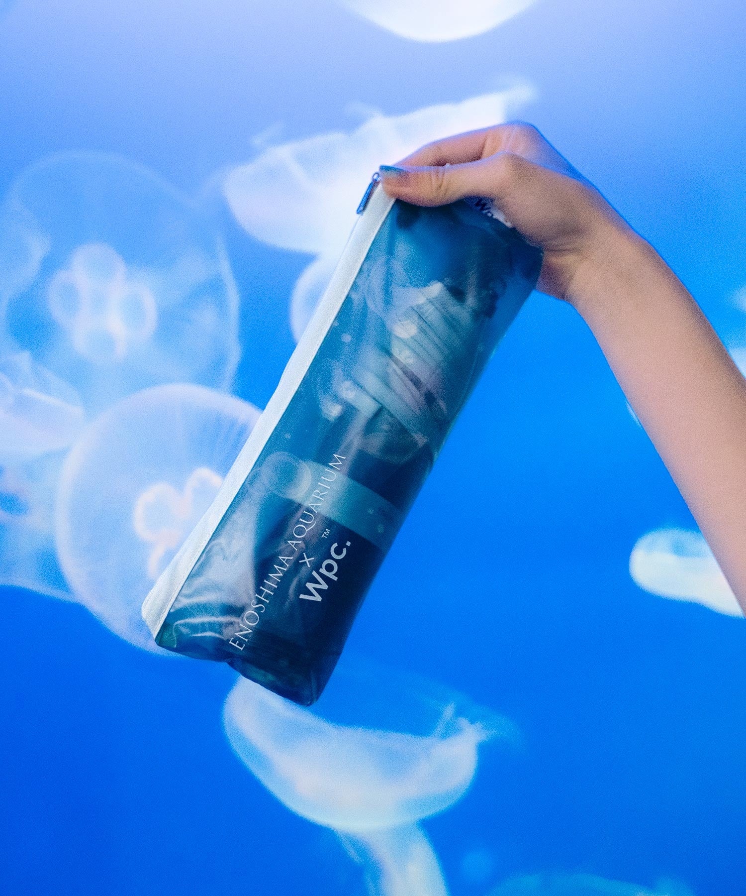 2023年6月に発売した新江ノ島水族館とWpc.のコラボレーション傘は新江ノ島水族館の”メインショップ”とオンラインショップのみの限定販売となっておりましたが、SNSを中心に大きな反響があり、全国で販売してほしいとのお声をいただいたこと、また今年Wpc.ブランド創立20周年と新江ノ島水族館開館20周年というアニバーサリーイヤーを迎えたことを記念して、Wpc.公式オンラインショップや直営店舗、LOFTなどでの全国発売が決定しました。新たなキービジュアルは新江ノ島水族館の閉館後に撮影。幻想的な雰囲気の中、生き物たちが大きな水槽を優雅に泳ぐ様子は圧巻です。