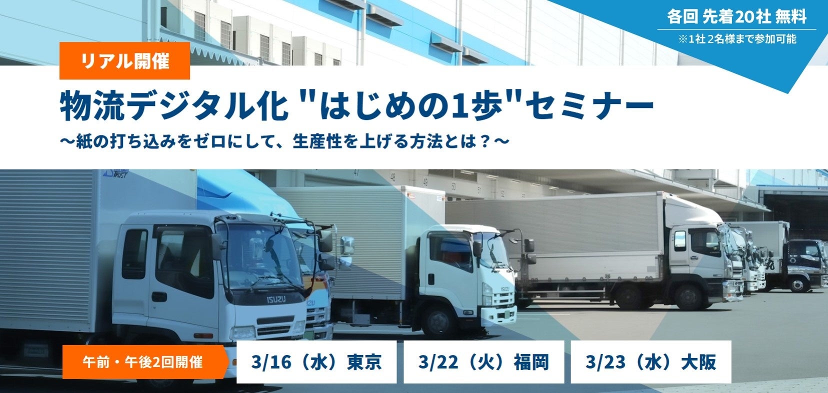 | タイトル | 物流デジタル化 "はじめの1歩"セミナー ~紙の打ち込みをゼロにして、生産性を上げる方法とは?~ |