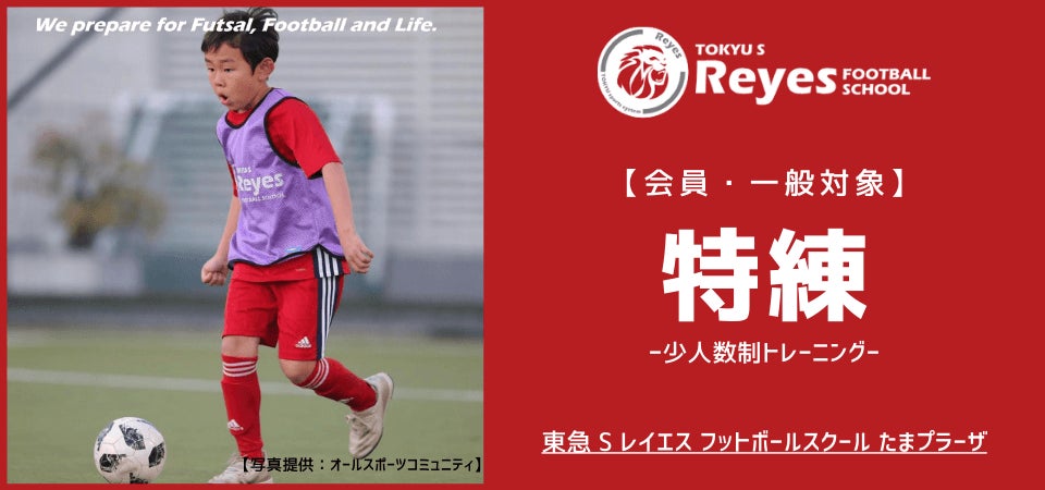 東急Sレイエス フットボールスクール たまプラーザでは、7月9日(土)・16日(土)にアディダスフットサルパークたまプラーザにて、小学3~5年生を対象とした少人数制トレーニング『特練』を開催いたします。少人数で集中してトレーニングをしたいお子様にはお勧めですので、ぜひこの機会にご参加ください。