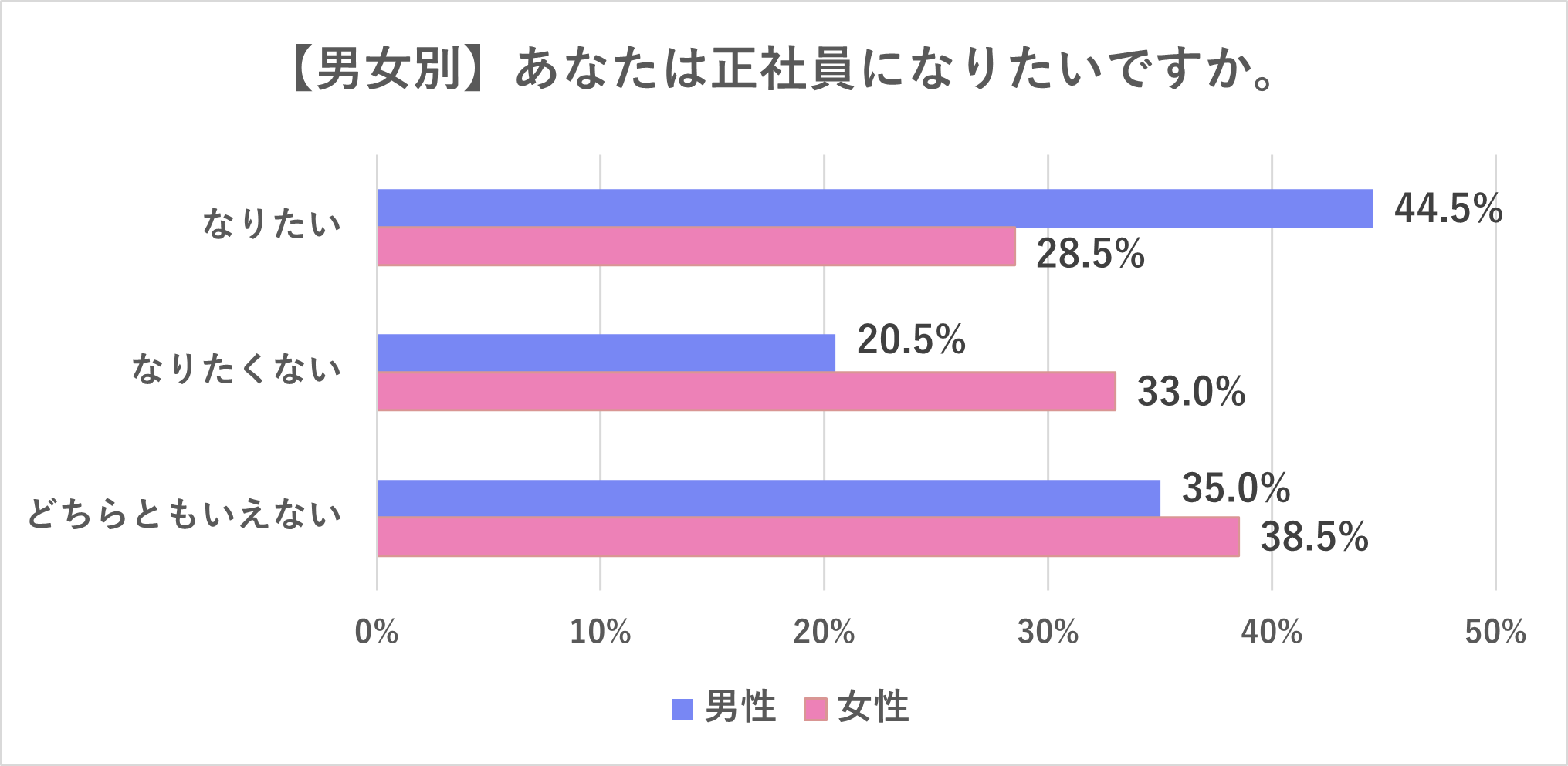 ■男性は女性より、「正社員になりたい」が16ポイント高い