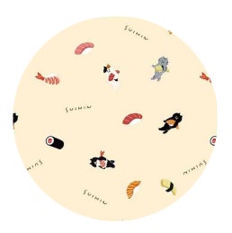 「握り寿司をかっこよく持ち運ぶ猫」で注目を集めたSNSで人気の刺繍作家SUIMINがデザイン。