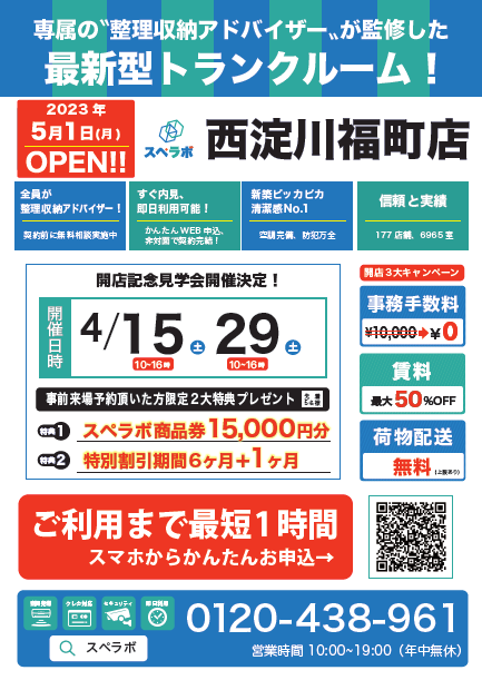 オープンに合わせ4月15日(土)4月29日(土)に見学会を実施しますので、ぜひ【スペラボ・西淀川福町店】にお越しくださいませ。