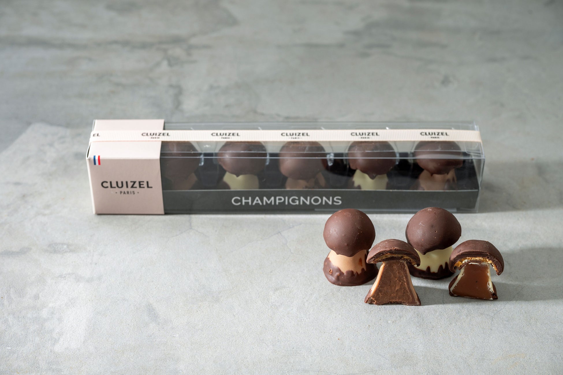 詳細:現オーナーの祖父である初代マーク クルイゼルが考案した、かわいらしいキノコ型のショコラ。特別なレシピで作られており、傘の部分はカリカリ食感の自家製ヌガティーヌをダークショコラでコーティングし、幹の部分は自家製キャラメルや、ヘーゼルナッツが香ばしいジャンドゥーヤをしのばせてあります。