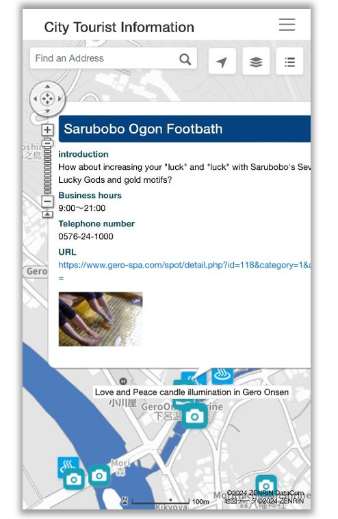 また、下呂温泉内の足湯スポットや観光施設の情報を閲覧可能で、下呂温泉内の周遊性の向上にも貢献します。