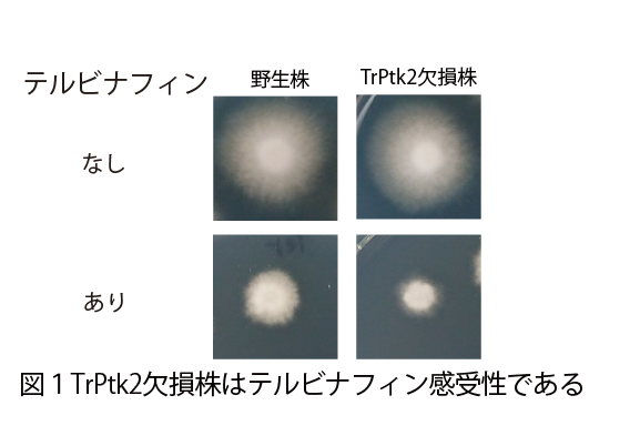 (1)白癬菌のテルビナフィン耐性に関与するタンパク質TrPtk2を同定