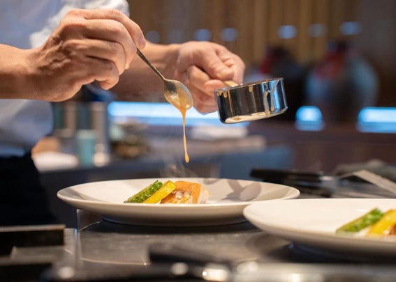 新鮮な食材の魅力を最大限に引き出す、熟練シェフによる焼き加減と調理技術、美しく盛り付けた料理の中に表れる、シェフの優しさや温かさを感じる印象的な味わいをお楽しみいただけます。