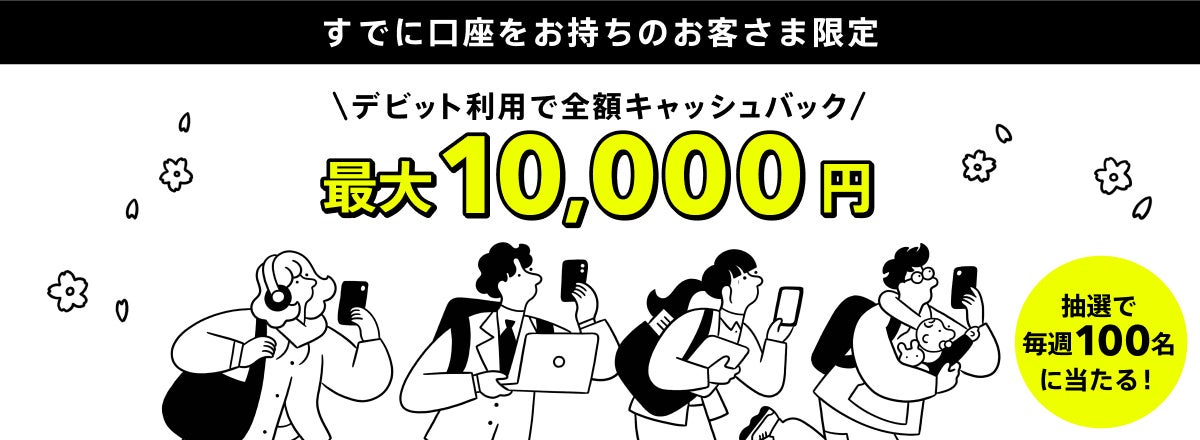 毎週全額キャッシュバック!デビット利用で抽選キャンペーン