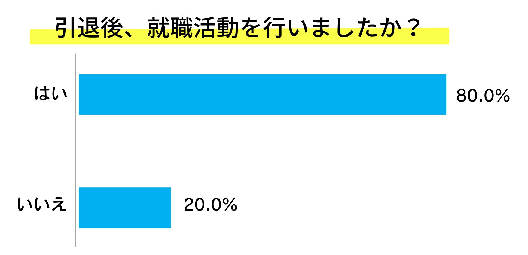 次に、「競技引退後に就職活動を行ったか」を確認したところ、80.0%が「はい」と回答しました。大半が競技生活の延長線上で就職するわけではなく、新たなキャリアを探すため就職活動を行っていると言えます。