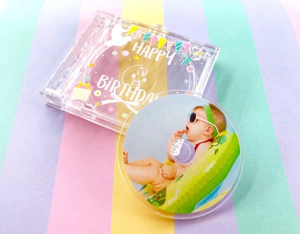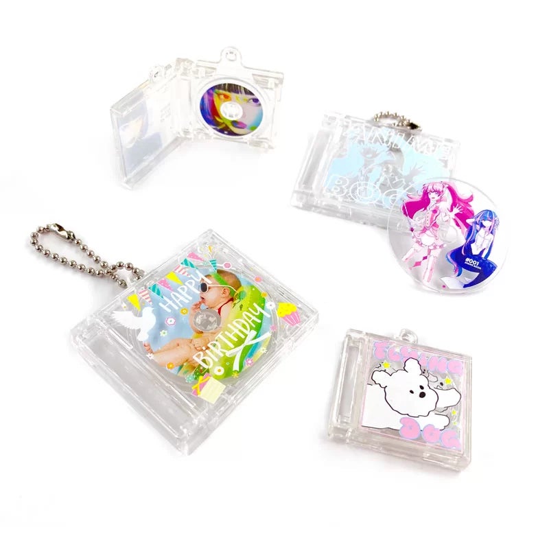 オリジナルミニCDキーホルダーは、推しの写真やロゴを使って自由にカスタマイズ可能。ディスク部分は取り外しができ、両面やディスク自体にもフルカラー印刷が可能です。ライブグッズやノベルティ、記念品として幅広くご活用いただけます。