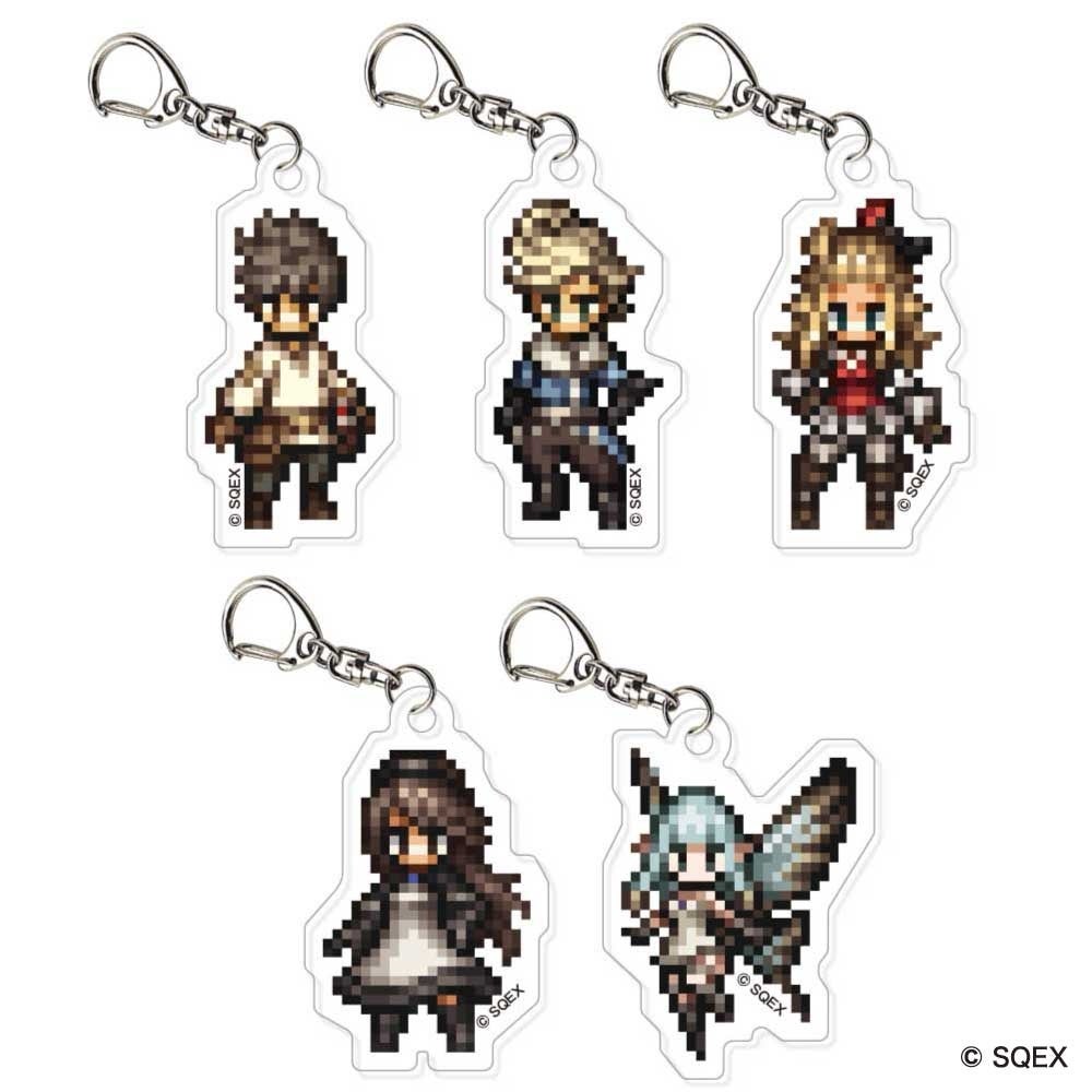 プレゼント② 『ブレイブリーデフォルト フライングフェアリー』よりティズ、アニエス、イデア、リングアベル、エアリーを浅野チームが本イベントのために特別にドット絵で再現! こちらのドット絵アクリルチャームを5種類の中からランダムで1つプレゼント! ※絵柄はお選びいただけません。