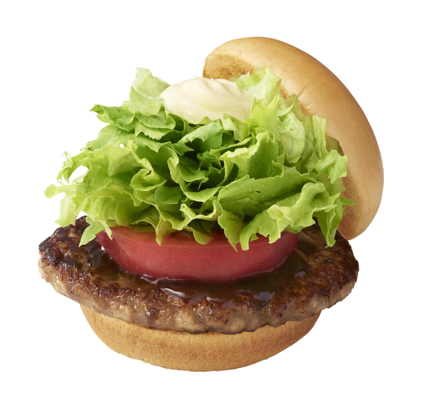 国産肉(牛・豚の合挽き肉)100%使用のふっくらとしたボリュームのあるハンバーグに和風ソースをかけ、輪切りのトマトとたっぷりのレタスを重ね、ハーフマヨネーズタイプをのせました。全国で販売中の「とびきりハンバーグサンド <トマト&レタス>」と比べ、約3倍(重量ベース)のレタスを使用した、特別なハンバーガーです。