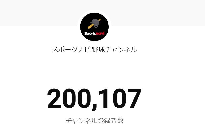 YouTube「スポーツナビ 野球チャンネル」が登録者数20万人を突破