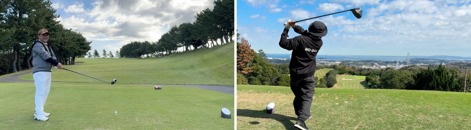 当日は、「おたからや」のイメージキャラクターである丸りおなさんに加え、いーふらんが展開する E-swing プレミアムのインストラクター・比嘉瑞姫も参加しました。天候にも恵まれ、まさにゴルフに最適な一日となり、参加者はそれぞれの腕前を発揮しながら白熱したプレーを繰り広げました。