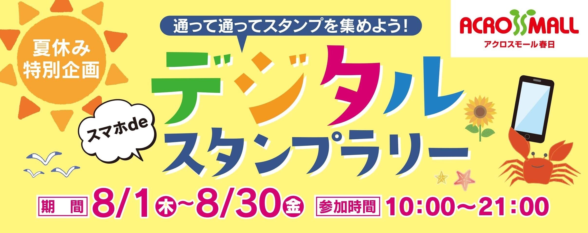 株式会社ギックス(本社:東京都港区、代表取締役CEO:網野知博、以下:当社)は、大和ハウスリアルティマネジメント株式会社(本社:東京都千代田区、代表取締役社長:伊藤光博)が運営する商業施設「アクロスモール春日」(福岡県春日市)にて、8月1日(木)より開催するキャンペーン「夏休み特別企画デジタルスタンプラリー」に、当社提供の商業施設・観光事業向けキャンペーンツール「マイグル」が採用されたことをお知らせいたします。