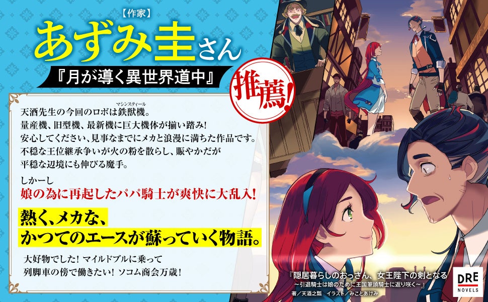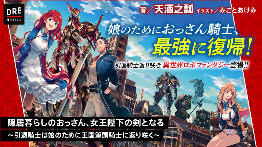 『隠居暮らしのおっさん、女王陛下の剣となる』は天酒之瓢(代表作『ナイツ&マジック』)の完全書き下ろし小説で、娘を助け悪を挫く痛快おっさん活劇となっています。
