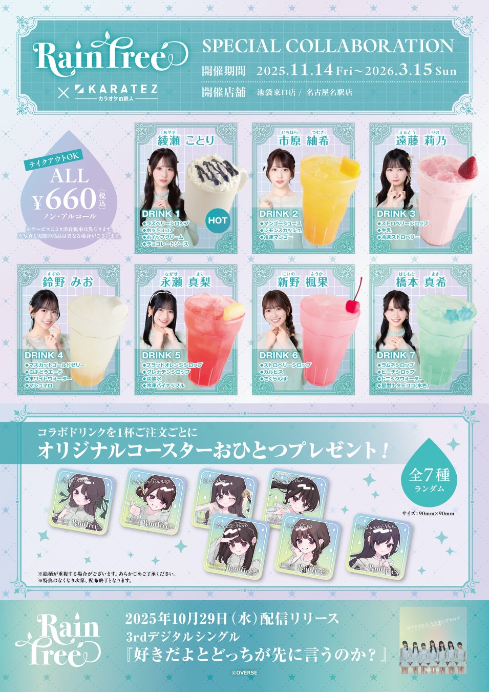 また、カラオケをご利用しなくても、いつでも気軽に立ち寄れるよう、コラボドリンクはテイクアウトが可能で、コラボグッズもショップコーナーで購入することも可能です。
