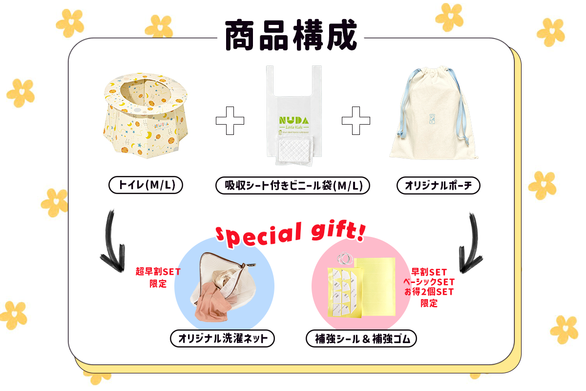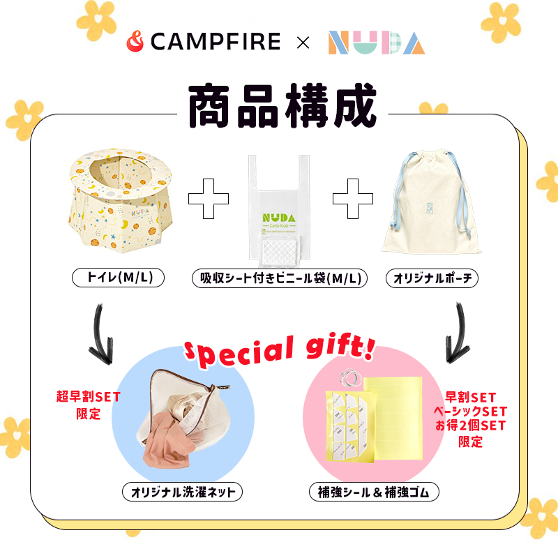 プロジェクトタイトル〈片手に収まる子供用携帯トイレ「NUDA」日本初上陸! 子供のトイレをもっと手軽に〉