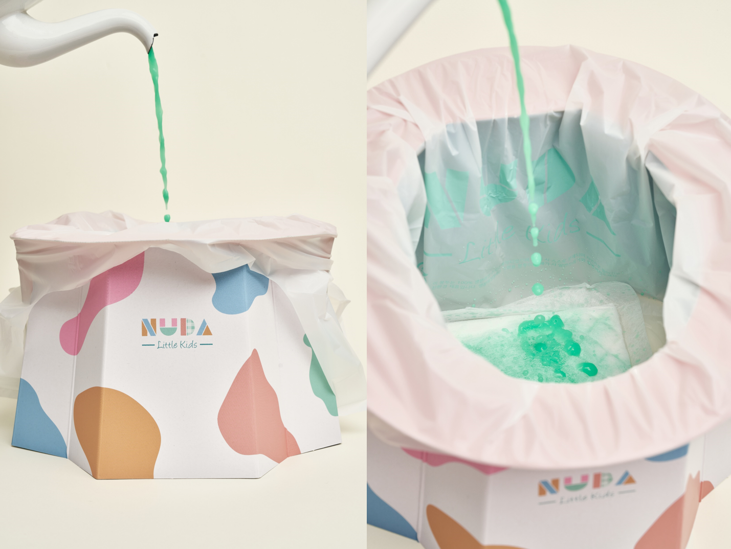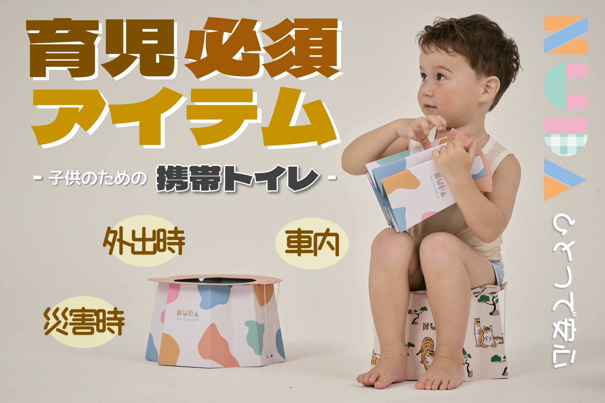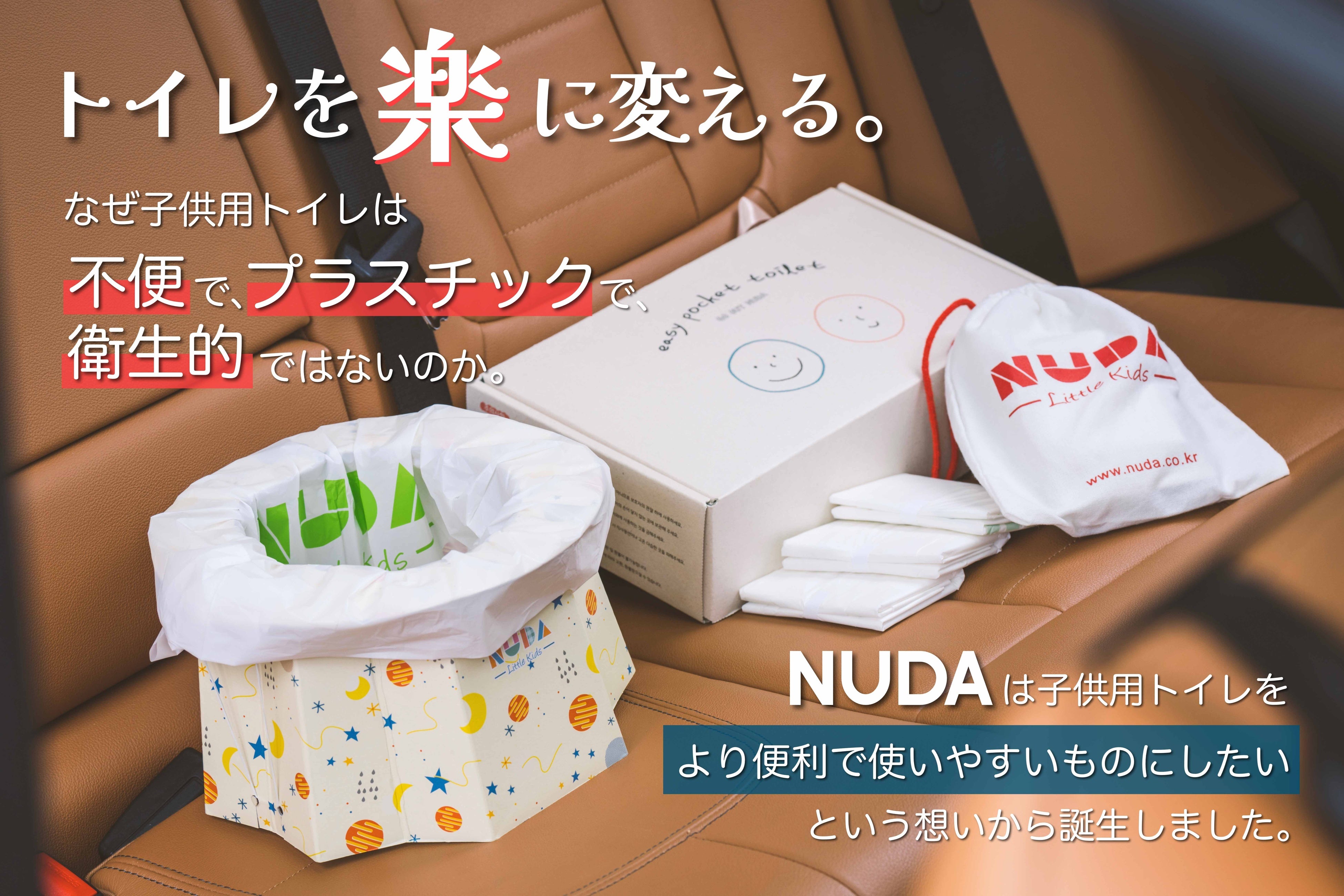 外出時に突如聞こえる子供の「トイレ!」という言葉に、何度も「ヒヤッ」とさせられた親御さんも多いのではないでしょうか。後処理が面倒なプラスチック製の子供用トイレや衛生的に心配な公衆トイレ、大きくて不便な大人のトイレ…そんな悩みを解決するために、さらに「楽」で「便利」で「衛生的」な子供用トイレの研究の末、「NUDA」が誕生しました。