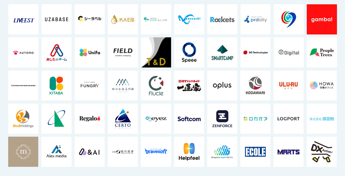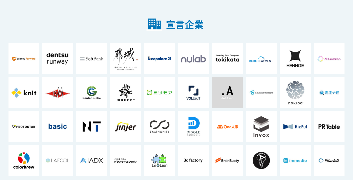 ベンチャー・スタートアップ、中小、大手、さまざまな規模の企業から、地方自治体、団体に至るまで、業種や業態に関わらず、幅広く参加しています。