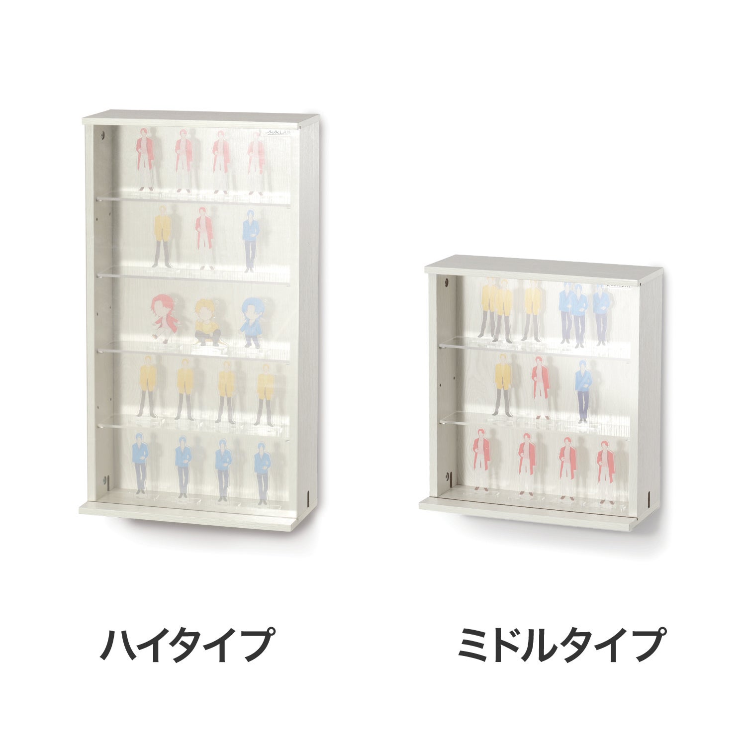 スライド式のアクリル扉付きで、大切なコレクションを埃からカバー。いつも綺麗な状態を保つことができます。