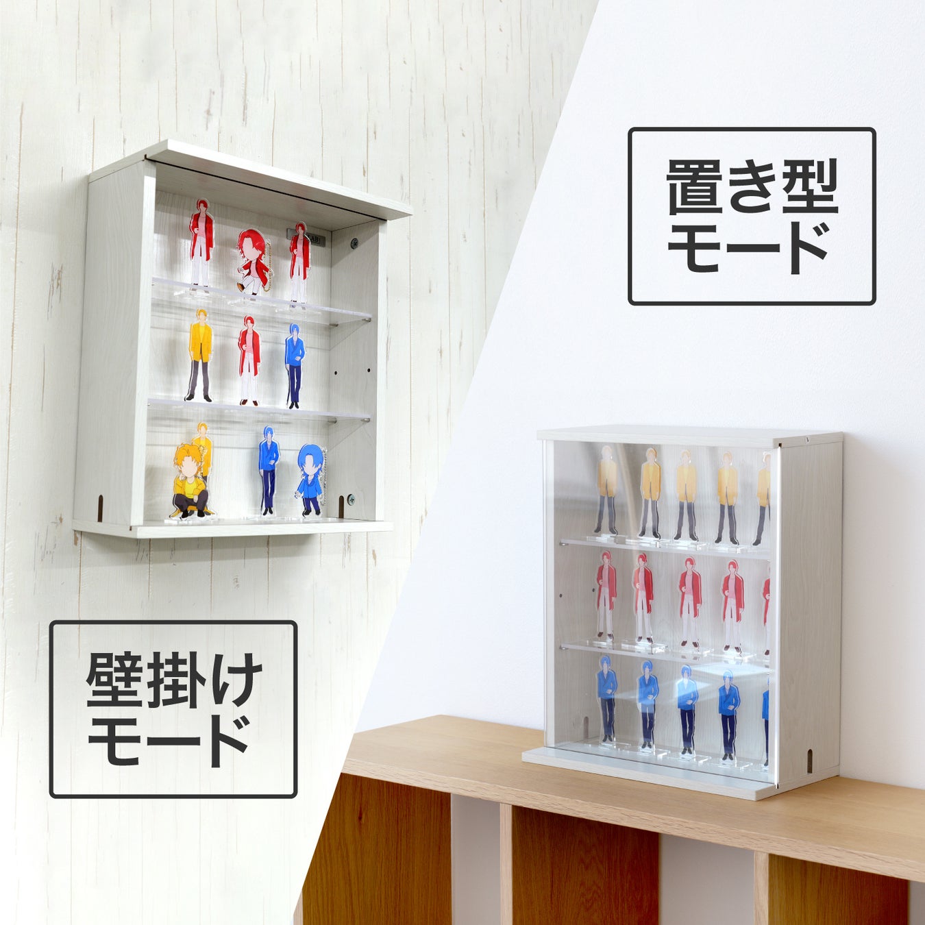 増え続ける推しグッズ、もう置き場所がない…そんなお悩みを解決して、自室に推しを住まわす大家気分が味わえる、薄型収納コレクションケースです。
