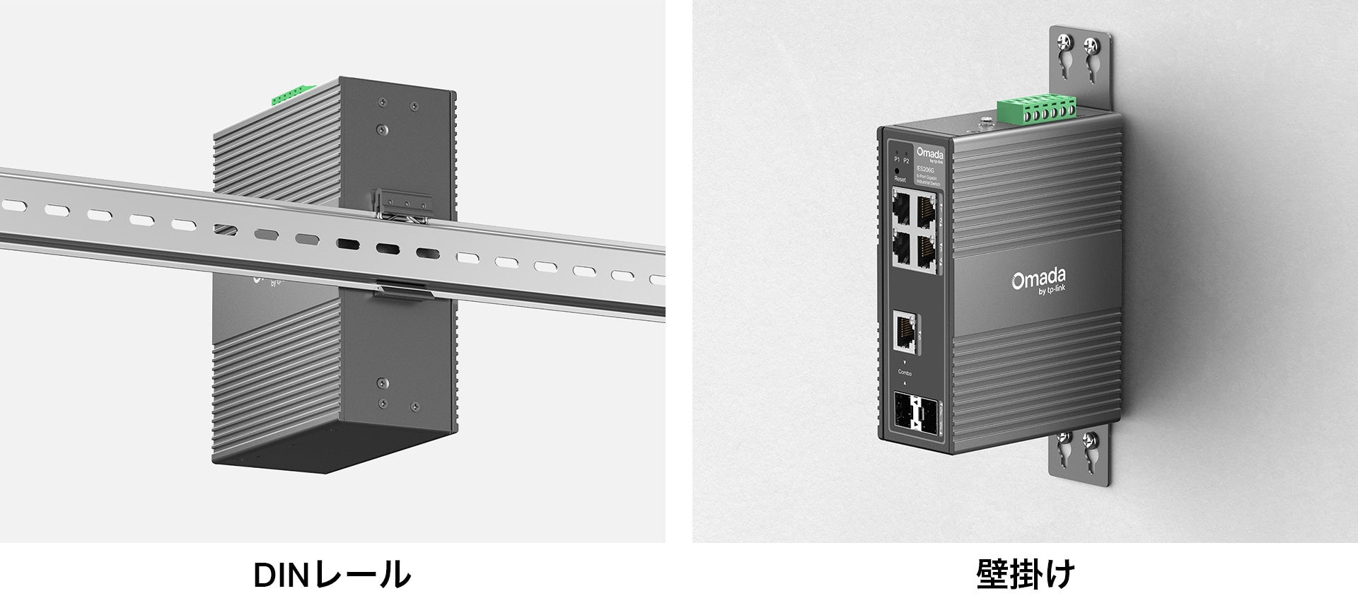 DINレール設置と壁掛け設置に対応し、容易で省スペースな取り付けが可能です。