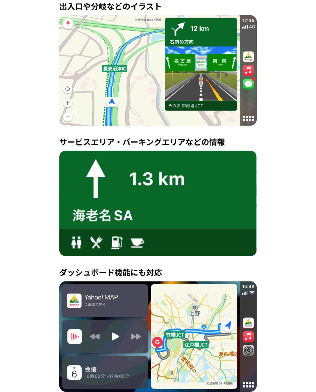 そのような背景から今回、「Yahoo!カーナビ」(※1)に続き、「Yahoo! MAP」の自動車ナビゲーション機能を「CarPlay」に対応し、車での移動をより快適にサポートします。