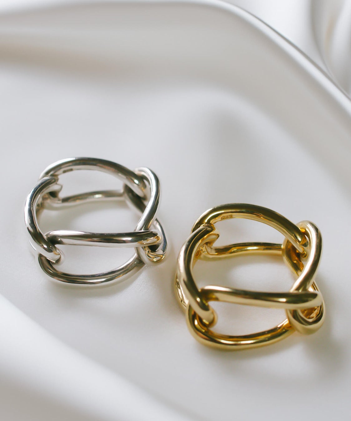 フェミニンのはずしにぴったり。今女性に人気のメンズライクなざっくりチェーンリング。 丸みと艶のあるラインで仕上げたからマニッシュな雰囲気もあるのに、 どこか上品さもあって、キレイ目スタイルにも馴染みます。